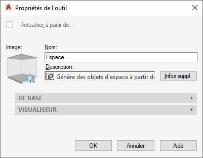 Les outils représentent généralement des objets ou des éléments de contenu AEC. Toutefois, vous pouvez également créer un outil représentant une commande.