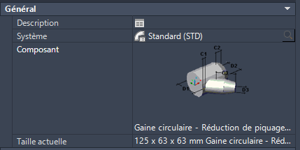 | *Vitesse | Affiche la valeur de vitesse de l'objet sélectionné en fonction de la définition de la section Définitions de système de gaines dans le Gestionnaire des styles (en lecture seule). | |
