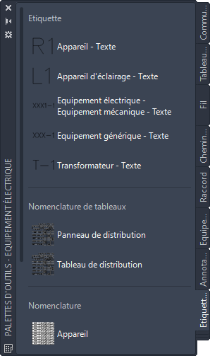 - Dans les palettes d'outils électriques, cliquez sur la palette des étiquettes et des nomenclatures.