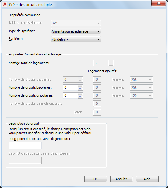 | Général ou Autre | Indiquez le nombre de circuits à créer dans le champ correspondant. |