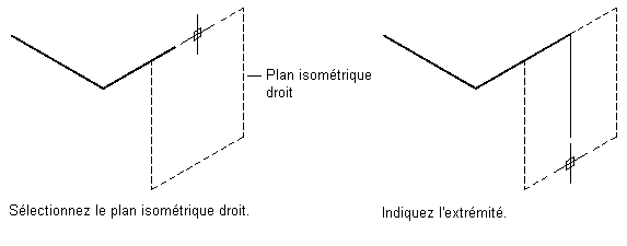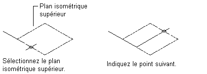 - Pour changer de plan isométrique en cours de dessin, sélectionnez un autre plan dans le champ Plan isométrique de la palette des propriétés, puis spécifiez d'autres points de la ligne.