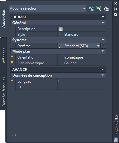 - Dans le champ Plan isométrique, sélectionnez le plan isométrique sur lequel vous souhaitez commencer le dessin : gauche, supérieur ou droit.