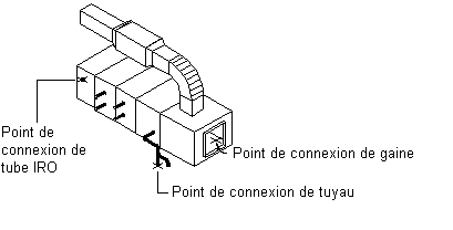 Utilisez une convention d'appellation standard représentative de la taille de composant ou de la famille de composants lorsque vous enregistrez le bloc modèle. Par exemple, un bloc modèle pour une unité de traitement d'air installée sur le toit d'un établissement commercial dont la taille de la sortie est de 24 x 24 peut être libellé Modèle UTA toit commercial 24x24.