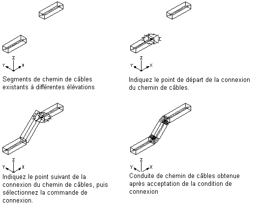 Connexion de segments de chemin de câbles à des niveaux d'élévation différents