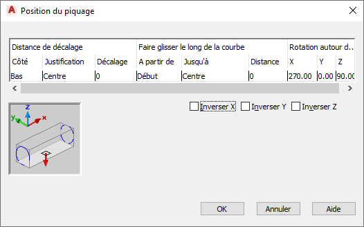 Remarque : La position du piquage s'affiche uniquement si des raccords de piquage ont été ajoutés au dessin.