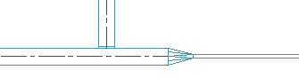 Remarque : Le logiciel affiche le trait d'axe d'un piquage à condition d'activer les traits d'axe pour la forme correspondant à la connexion. Le trait d'axe continue jusqu'au réseau électrique si vous sélectionnez l'option Etendre le trait d'axe aux raccords de piquage et si le piquage est de forme circulaire ou ovale (et non rectangulaire ou multiforme).