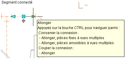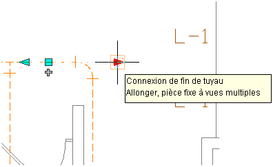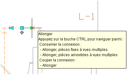Lorsque vous utilisez la poignée d'extension située au niveau d'une extrémité raccordée à un autre objet, vous devez indiquer si Jeu d’outils AutoCAD MEP 2027 doit conserver la connectivité entre les objets.