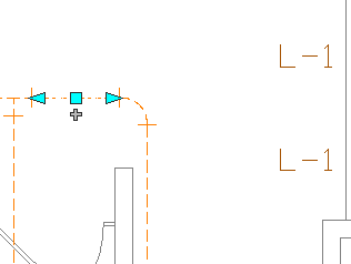 ) permettent de modifier la longueur des segments de ligne de plomberie. Ces poignées permettent de conserver l'angle défini pour les segments, ce qui facilite la modification de la longueur des segments de ligne de plomberie déjà disposés.