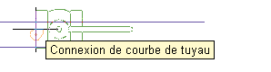 - Pour placer la pièce sur un tuyau, déplacez le curseur au-dessus d'un segment de tuyau de manière à afficher une connexion de courbe de tuyau ou de fin de tuyau.
