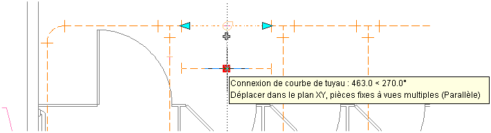 L'exemple suivant illustre une ligne de plomberie déplacée. Les raccords reliés à la ligne de plomberie sont inclus dans le déplacement. En revanche, tous les autres composants de la conduite demeurent à leur emplacement d'origine.