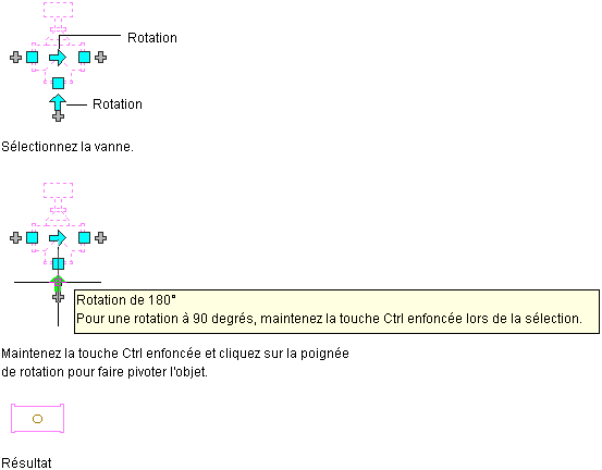 Rotation d'une vanne à 3 voies de 90 degrés dans une vue en plan