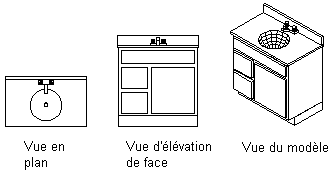Il existe deux types de composants : les composants basés sur des blocs et les composants paramétriques. Les composants basés sur des blocs désignent des occurrences de composant uniques associées à des propriétés prédéfinies (par exemple, la forme et la taille). Ils sont prédéfinis en fonction de certaines propriétés et de plusieurs blocs AutoCAD®. Chaque bloc représente le composant dans une vue différente, définissant ainsi plusieurs aspects pour les composants, suivant les directions de visualisation.