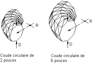 Les raccords tels que les coudes, les tés et les croix ont également des caractéristiques géométriques communes : seules certaines dimensions varient selon la conception. Par exemple, un coude circulaire d'un diamètre de 2 pouces ressemble à s'y méprendre à un coude circulaire de 6 pouces, mis à part la valeur du diamètre et le rayon du coude. En produisant un composant paramétrique, vous êtes en mesure d'élaborer un modèle 3D de coude circulaire et de définir ensuite les paramètres de diamètre et de rayon du coude pour obtenir la taille souhaitée. Après l'insertion du coude dans le dessin, spécifiez simplement le diamètre et le rayon du coude pour le générer de manière dynamique selon les critères définis.