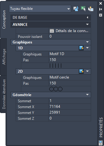 Propriétés avancées (propriétés de tuyau flexible incluses)