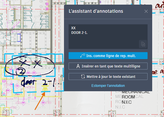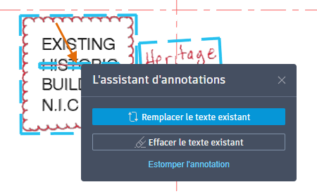 L’assistant d’annotations est uniquement disponible dans Tracé arrière. Vous pouvez ainsi mettre à jour ou insérer une géométrie de dessin en fonction des annotations importées.