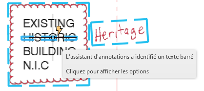 L’assistant d’annotations peut reconnaître les annotations de texte qui contiennent du texte barré. Différentes options sont disponibles pour les annotations de texte barré.