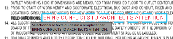 Sélectionnez le texte FIELD CONDITIONS lorsqu’il vous est demandé de sélectionner le texte à remplacer.
