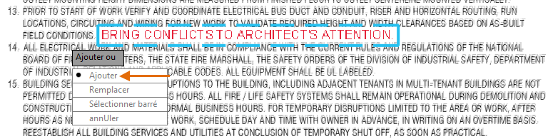 Il existe deux options pour le texte barré : remplacer ou effacer le texte existant. Dans cet exemple, nous allons remplacer le texte existant par du texte issu de l’annotation située à côté.