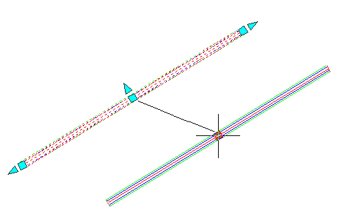 Cette poignée permet de déplacer l'intégralité de la canalisation vers un nouveau point précis. Sur une canalisation incurvée, les poignées du milieu se comportent comme les objets d'arc AutoCAD : les extrémités sont conservées et le curseur agit comme un emplacement de passage.