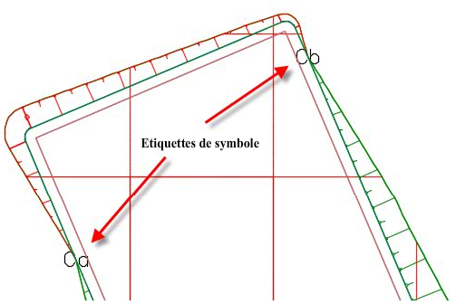 Si vous sélectionnez Étiquette de symbole, les symboles sont insérés aux emplacements où les cellules sont irrégulières et les informations sur ces points sont insérées dans une table dans le dessin.