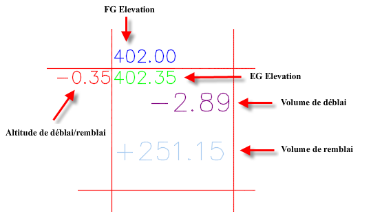 Tableau statistique : affiche le nombre total de valeurs de déblai et de remblai et les totaux pour chaque ligne et colonne de la grille.