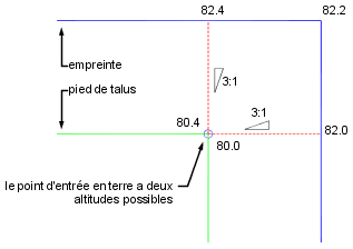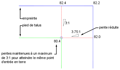 Conserver le talus au maximum : conserve le talus ou la pente indiqués comme maximum et aplanit la pente projetée à partir de l’empreinte d’un côté.
