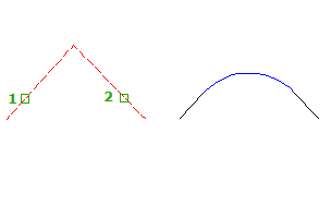 L'option permet de définir la valeur Accrochage aux objets sur FIN pour cette invite. Il n'est pas nécessaire que le point sélectionné soit placé sur une courbe existante, il peut se situer le long de la tangente adjacente.