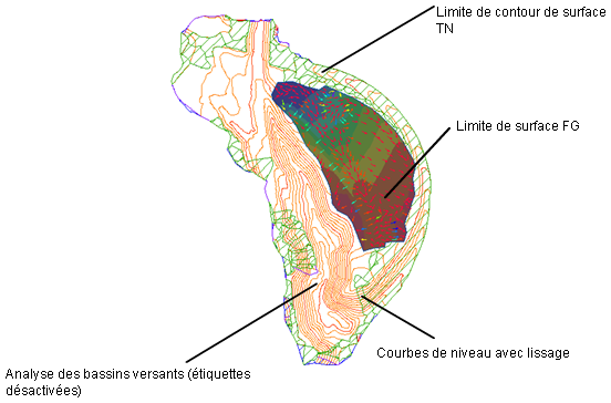 Les points ou les courbes de niveau constituent généralement la partie principale des informations de surface d'origine et sont complétés par des lignes de rupture et des limites de contour.