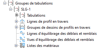 Les tabulations, quant à elles, sont affichées avec leur nom, tel que SL-1, dans les groupes de tabulations du même nom, situés dans l’ensemble Groupes de tabulations :