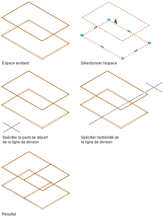 Vous pouvez sélectionner les parties divisées du dessin au trait ou de l'objet de chaque côté de la ligne de division. La ligne de division n'est pas visible après la sélection du deuxième point.