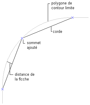 Lorsque vous utilisez des polygones/polylignes contenant des courbes de limites de contour ou de lignes de rupture, définissez la valeur de la flèche des segments de corde, utilisée pour discrétiser les segments d'arc du polygone/de la polyligne de limite de contour :