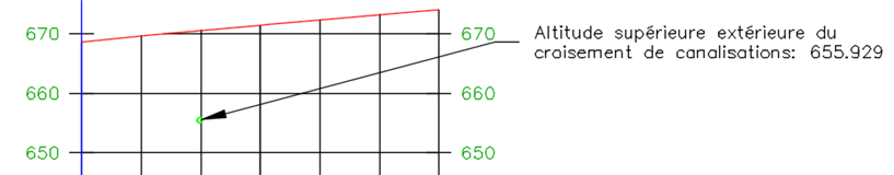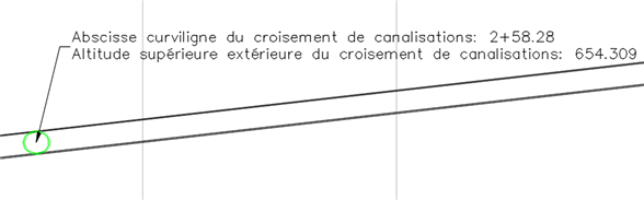 Si le croisement de canalisation sous pression est déplacé vers une autre abscisse curviligne le long de l'axe, l'étiquette sera mise à jour avec les nouvelles informations d'abscisse curviligne et d'altitude.