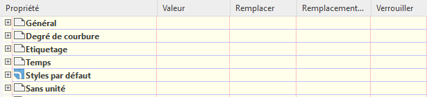 Au niveau de l'objet, cette boîte de dialogue contient également des paramètres spécifiques à l'objet, notamment les styles par défaut :