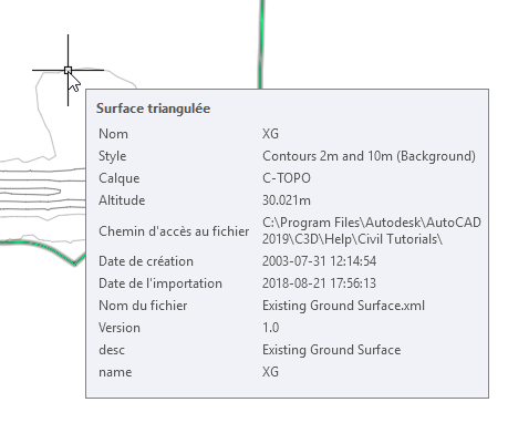 Vous pouvez afficher ces données de jeu de propriétés dans la palette de propriétés AutoCAD et dans les info-bulles.