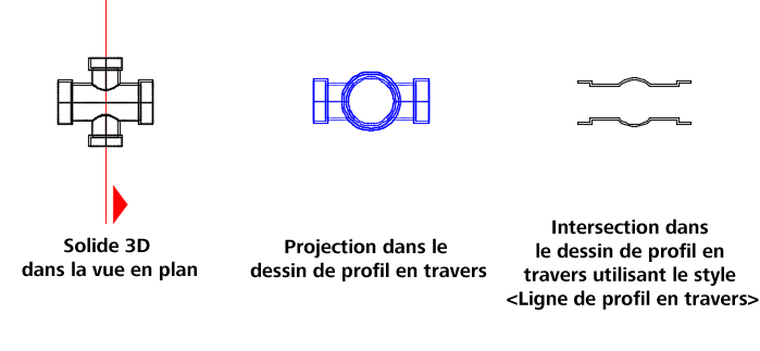 Les objets d'intersection dans les dessins de profils en travers utilisent les styles suivants :