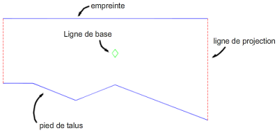 Pour créer des lignes de projection, appliquez des paramètres de talus à une empreinte. Le talus est un groupe d’ensembles nommés pour créer vos conceptions de surfaces finales et calculer les volumes.