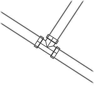 s’affiche. Ce glyphe indique que le nouveau tronçon s’accroche à la géométrie de la canalisation et ajoute un té approprié sur le tronçon existant pour connecter les deux tronçons. Lorsque vous cliquez sur le dessin pour insérer un composant lorsque ce glyphe est affiché, la connexion est créée.