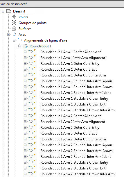 Utilisez l'ensemble Carrefour giratoire dans l'arborescence du prospecteur pour accéder aux carrefours giratoires dans un dessin.