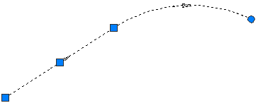 Poignées d'une courbe flottante associée à l'extrémité d'une entité dotée d'un point de passage :