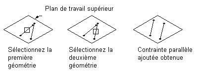 Peut être définie entre des paires de géométries avec une direction, telles que des lignes. Cette contrainte rend parallèles deux lignes ou plus.