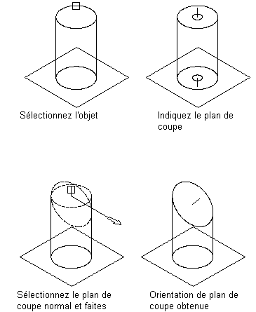 Un modificateur de plan de coupe divise un objet en deux composants dont un seul est conservé. Un modificateur de plan de coupe vous permet de changer la fin d'un objet en pente, facilitant ainsi la création d'objets plus évolués tels qu'un forage d'échappement. Vous pouvez modifier le plan de coupe en faisant glisser la normale (l'axe perpendiculaire) du modificateur afin de créer des pentes personnalisées. Les plans de coupe sont mis à jour lorsque la longueur du modificateur change.