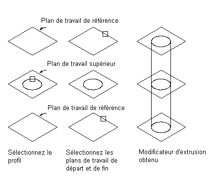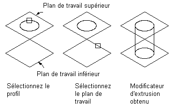 Le terme "modificateur" est un terme générique qui désigne toute opération ayant une incidence sur les objets du modèle. Après avoir créé des lignes de profil en long, vous pouvez utiliser des modificateurs pour extruder, ajouter ou soustraire des objets et pour balayer une ligne de profil en long le long d'un chemin. Vous pouvez également utiliser des modificateurs pour créer des plans de coupe et des objets de transition.