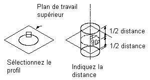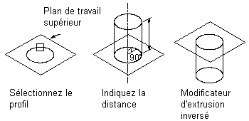 Une extrusion borgne balaye une ligne de profil en long à une distance définie le long de son axe perpendiculaire. Vous pouvez inverser l'extrusion afin de balayer la ligne de profil en long dans la direction opposée à l'axe perpendiculaire par défaut.