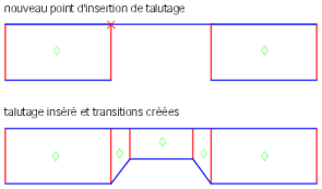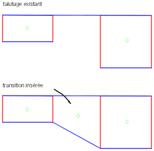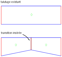 Une transition correspond à une zone dans laquelle une fusion entre le talus de zones situées de chaque côté est effectuée (par exemple, de 3:1 à 2:1).