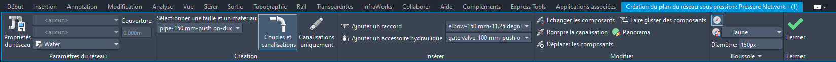- Cliquez sur OK pour afficher le ruban Création du plan de réseau sous pression.
