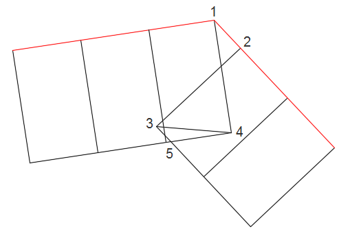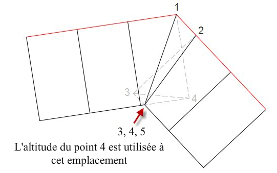 Les points 3 et 4 sont déplacés vers l’emplacement du point 5 et l’altitude du point 4 est désormais utilisée dans cet emplacement. L'emplacement et l'altitude des points 1 et 2 sont inchangés.
