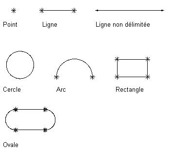 Les objets de géométrie correspondent aux blocs de conception de base utilisés pour la définition de la taille et de la forme du modèle.