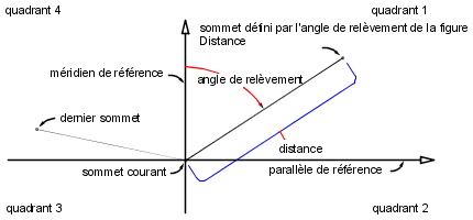 Pour créer un sommet sur la figure de topographie à l'aide d'une distance d'angle de relèvement
