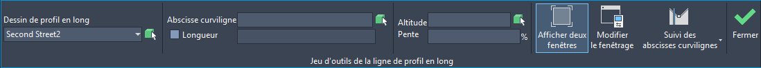 Le point est alors sélectionné dans le dessin de profil en long et les champs du ruban Jeu d'outils de la ligne de profil en long sont réinitialisés sur des valeurs vides.