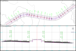 Créez un profil type transversal d’un projet 3D, puis créez un projet 3D en appliquant le profil type le long d’un axe et d’une ligne de profil en long. |